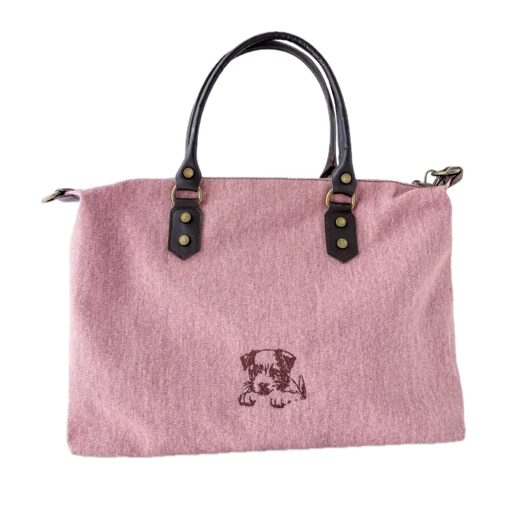 • En la foto principal puedes ver el bolso color gris oscuro bordado en fucsia en la letra bicolor.