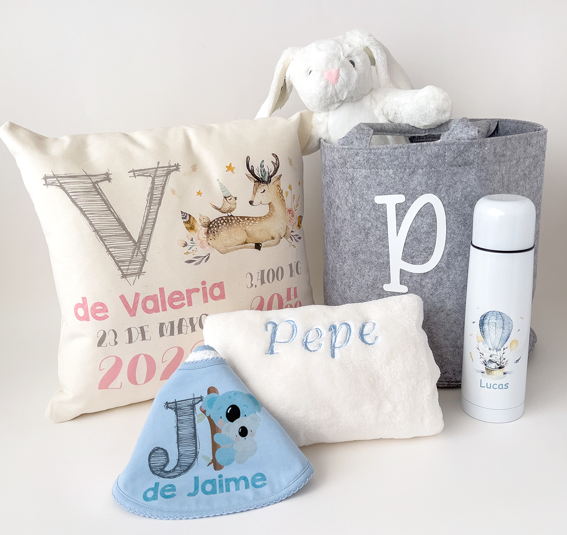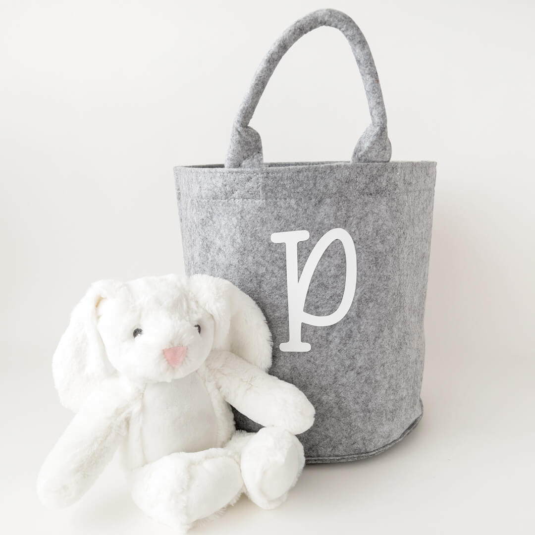 Cesto de Fieltro en gris personalizado con la inicial.