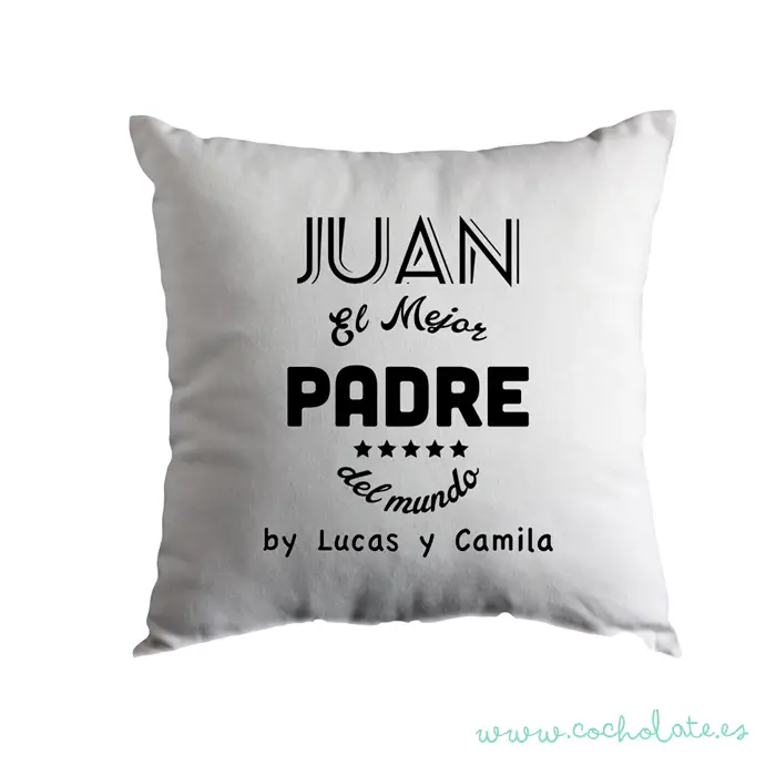 Cojín personalizado mejor padre personalizado con los nombres de los hijos mediante IDT – impresión digital textil -. Elige el color del diseño entre una gran variedad de colores.