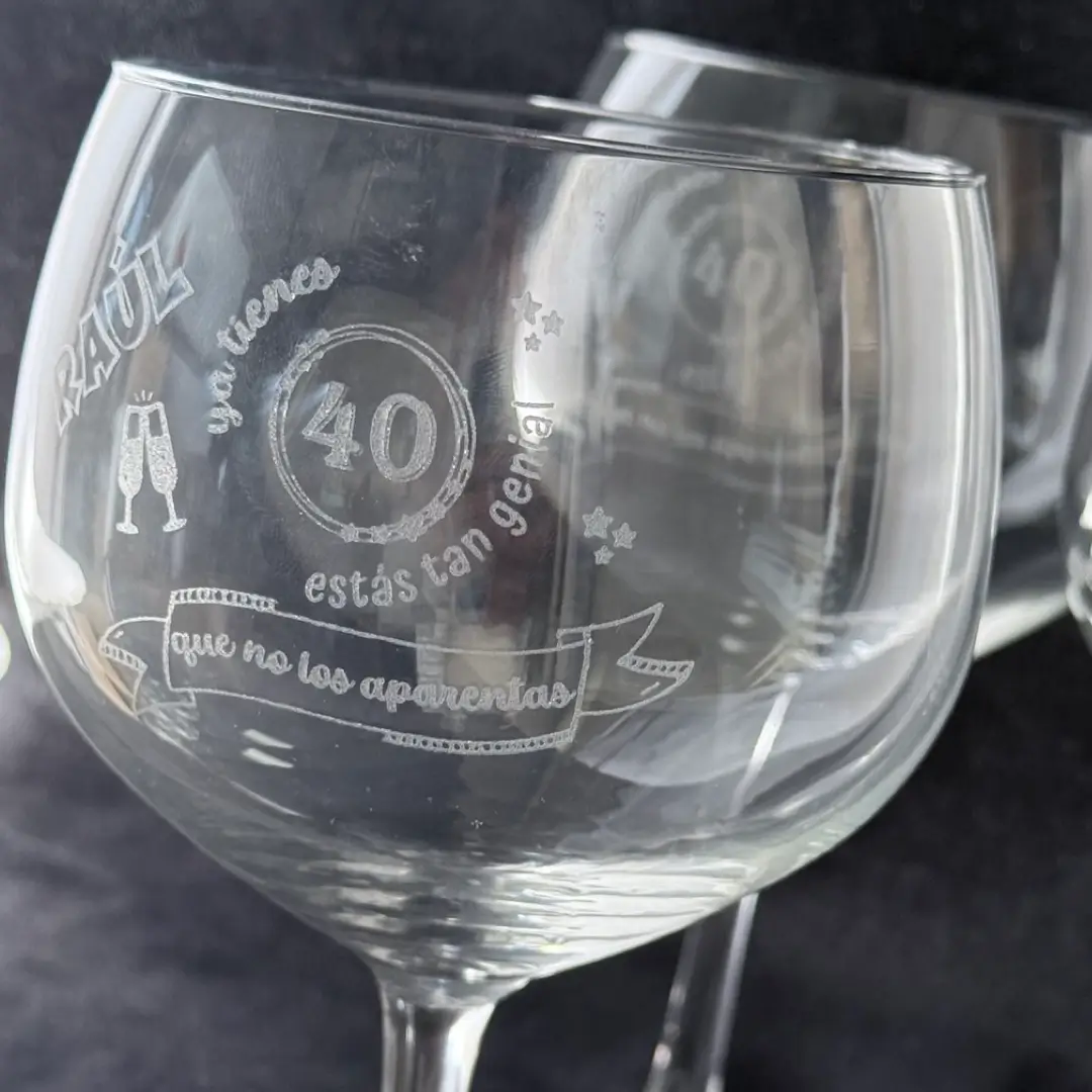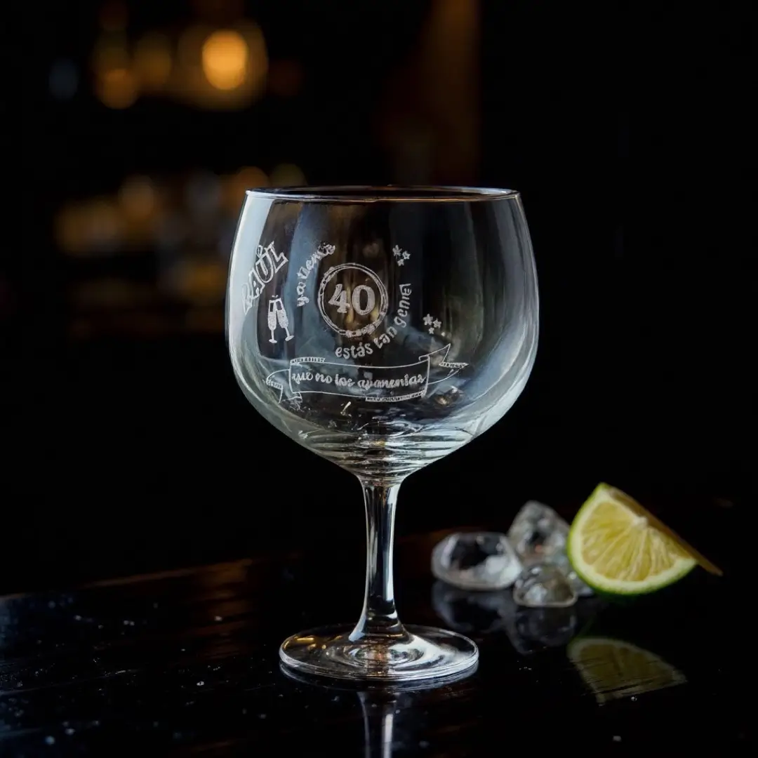 Haz que cada brindis sea inolvidable con esta copa de balón personalizada para cumpleaños. Perfecta para gin-tonic, cócteles o combinados, se convierte en un regalo original y elegante cuando se graba con el nombre y la edad del cumpleañero.