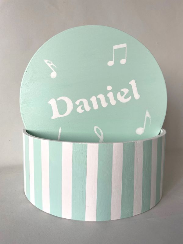 https://cocholate.es/decoracion/caja-redonda-rayas/21559 Caja Redonda rayas Original por su forma redonda, la personalizamos con los colores a tu gusto. Es perfecta para guardar su ropita, enseres y, más adelante, sus más preciados tesoros. ¡Un regalo ideal! Selecciona la combinación de colores que prefieres y, si quieres algún dibujo especial en la tapa, aparte del nombre, envíanoslo y selecciona "otro" en el desplegable y especifícalo en "comentarios del pedido" durante el proceso de compra. Al ser un trabajo artesanal y personalizado, el proceso de elaboración (pintura y barnizado) es mayor al habitual, pero el resultado final es una ¡CAJA ÚNICA! Plazo de entrega: 2 semanas.