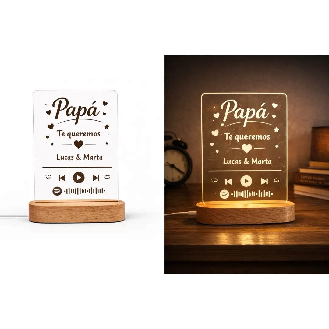 La lámpara papá personalizada es un regalo cargado de emoción que combina diseño, luz y sentimiento. Puedes personalizarla con los nombres de los hijos, una frase especial o una dedicatoria, creando un recuerdo que papá verá cada día.