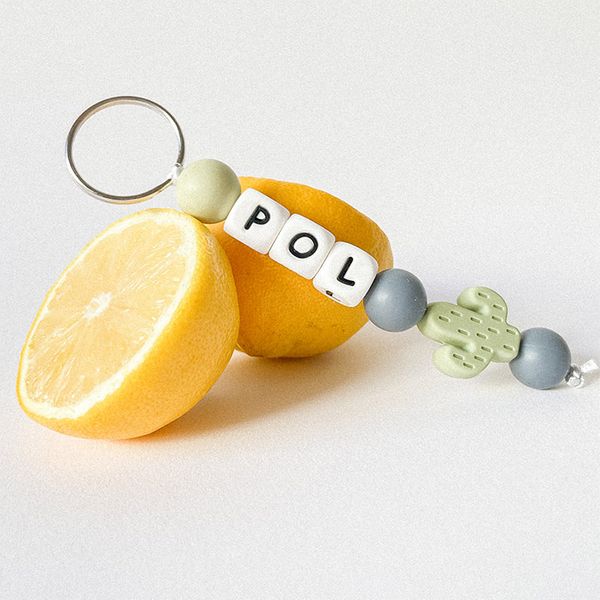 Puedes elegir las bolas de silicona en varios colores vivos y personalizarlo con nombre o iniciales, combinándolo con la figura decorativa que prefieras: una letra, forma infantil o dibujo que lo haga único.
