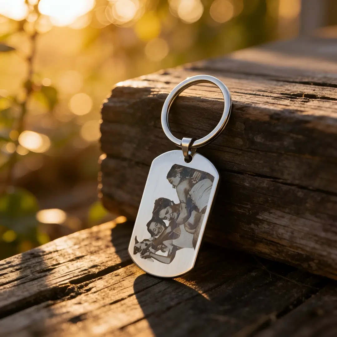 Un llavero con foto grabada no es solo un accesorio: es una forma de llevar siempre contigo un momento especial. Este llavero personalizado con imagen está diseñado para transformar una fotografía significativa en un recuerdo duradero grabado sobre acero resistente.