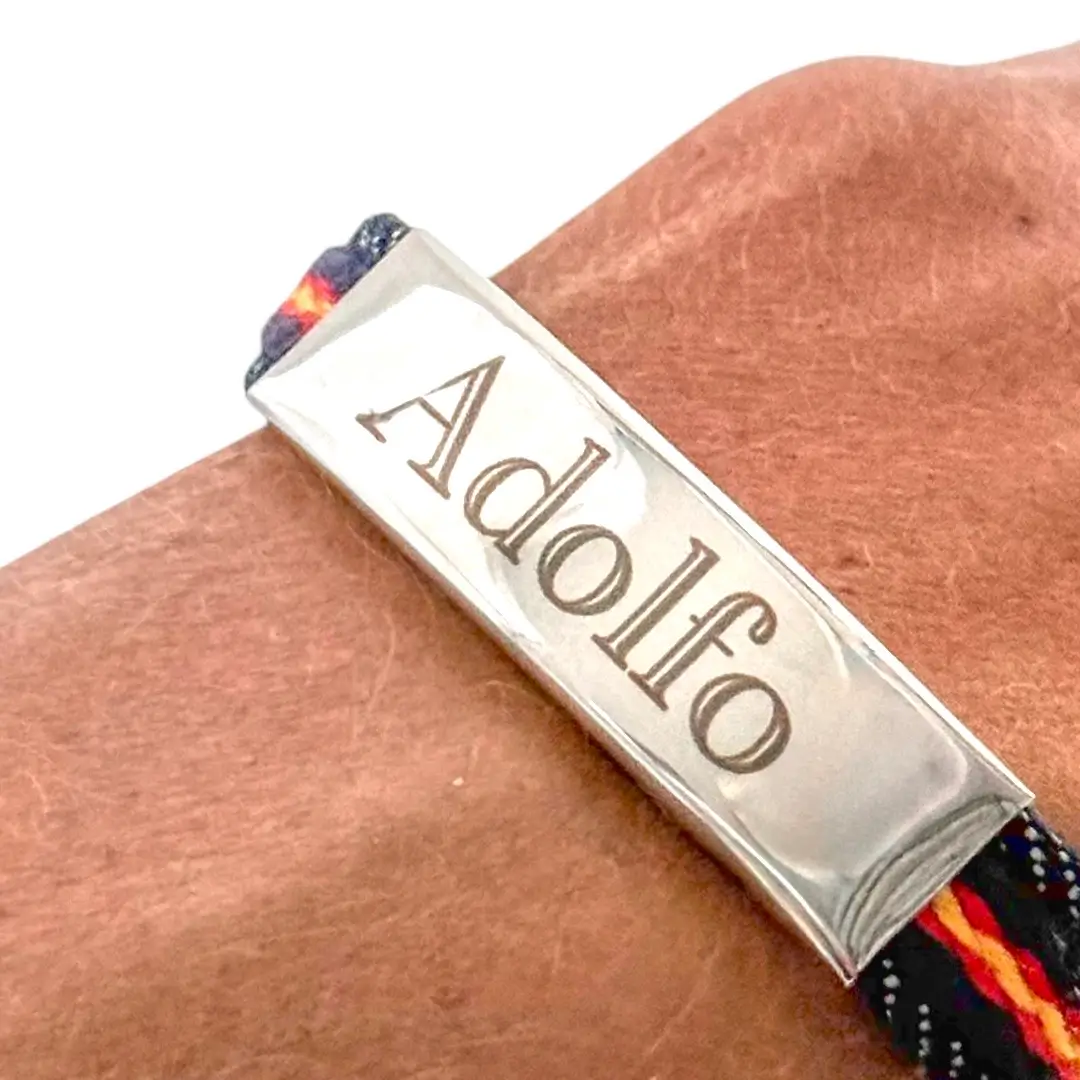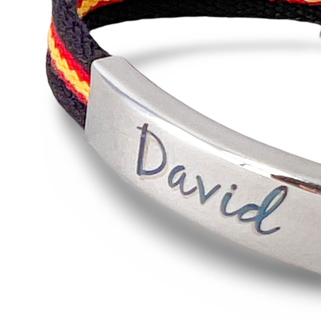 https://cocholate.es/pulseras/pulsera-personalizada-hombre-grabada/42280 Pulsera personalizada hombre grabada Pulsera personalizada hombre grabada con el nombre, texto, fecha... La pulsera es de tela con placa de acero inoxidable que es donde se graba el nombre. Aprovecha para hacer un regalo personalizado muy patriótico que refleje su estilo y gustos.