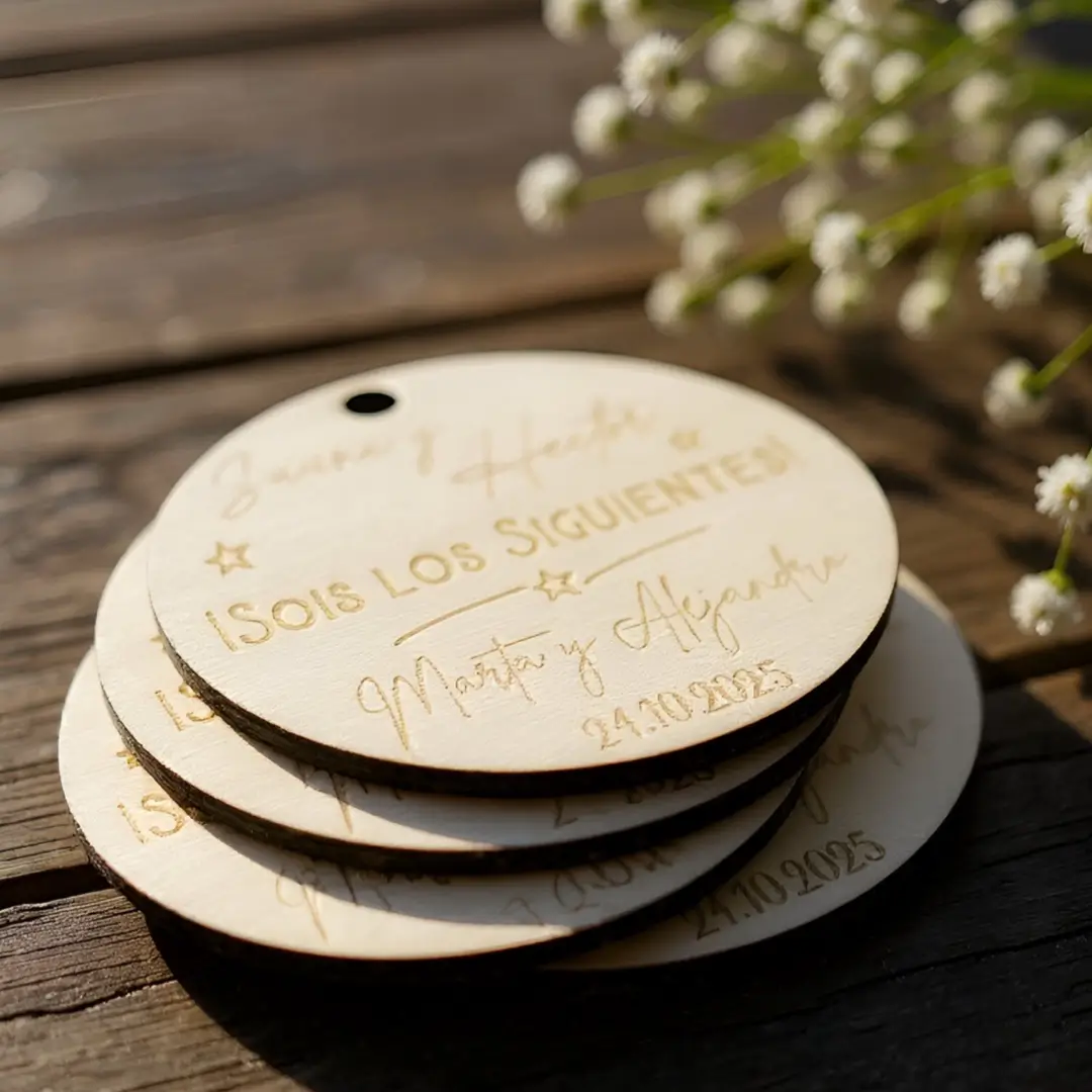 https://cocholate.es/boda/placa-sois-los-siguientes/28072 Placa sois los siguientes Una preciosa placa de madera con una inscripción para la pareja que será la siguiente. Un detalle precioso para regalar en la boda. La placa sois los siguientes es preciosa además de ser muy emotiva. Será un recuerdo que guardarán para siempre. La placa está hecha en contrachapado de madera y tiene un diámetro de 10cm. Y para que tengáis un recuerdo super especial os proponemos comprar las copas grabadas para boda en una caja que llevará grabado el mismo diseño que las copas. además, a caja personalizada podrán usarla a futuro para guardar recuerdos! sino iré bien embaladas para el transporte. En este momento, os proponemos el diseño de la foto, pero si tienes una idea distinta, no dudes en contactarnos por email a [email protected] y te ayudaremos con tu idea. Lo mejor de todo, es que no tienes que preocuparte si vas mal de tiempo... en 24 horas laborables tendrás la placa sois los siguientes personalizada. Y sobre todo no dejes de mirar las ideas que tenemos para invitados!