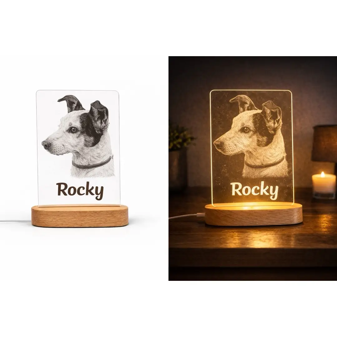 La lámpara LED personalizada con mascota es el regalo perfecto para quienes consideran a su animal parte de la familia. Grabamos la silueta de tu mascota junto a su nombre creando una pieza decorativa única.