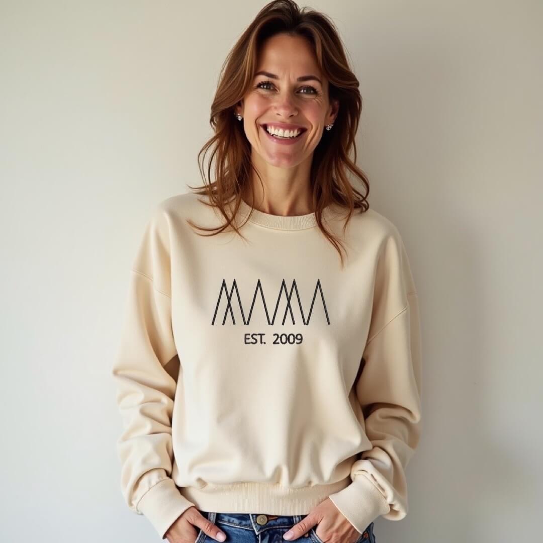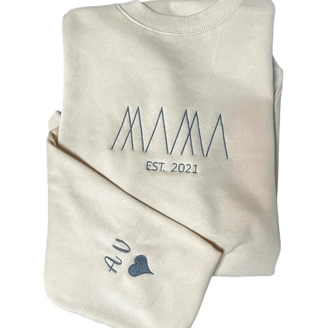 Sudadera mamá bordada con un precioso logo moderno. Un regalo perfecto para el día de la madre. Podrás escoger entre un montón de colores y textos para hacer tu sudadera única.