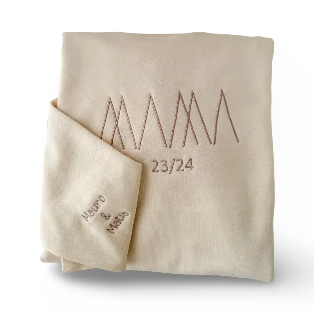 Puedes elegir el bordado en el color que quieras, seleccionándolo en el desplegable del cuadro de personalización. La letra en la que va bordada es la que figura en la fuente, pero no dudes en ponernos en comentarios si lo quieres de otra forma. Lo ideal es que sea una sudadera que a mamá le encante. Además puedes bordar el nombre de los peques en la manga lo que le hará sonreír a diario