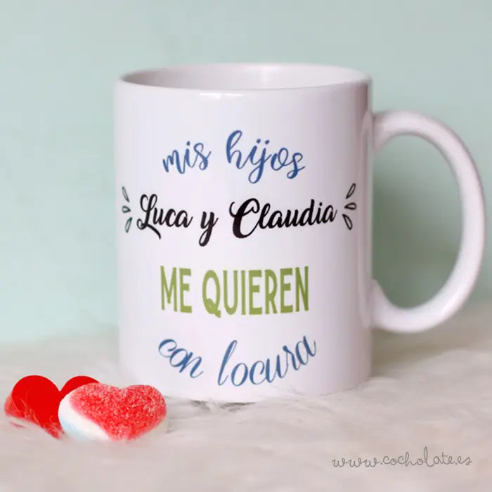 Taza en cerámica o en plástico (opción) con la frase «mi/s «XXX» me quieren con locura». Escribe de parte de quién es y su(s) nombre(s) en los campos de personalización correspondientes. Los colores del diseño no se pueden modificar. Podemos hacerla con hijos, padres, sobrinos, padrinos… ¡en el idioma que quieras! Si la quieres en un idioma distinto al castellano (Catalán, Valenciano, Gallego, etc.), escribe la traducción en el cuadro correspondiente entre las opciones de personalización. Entrega en 24 hrs. en península (personalización incluida).