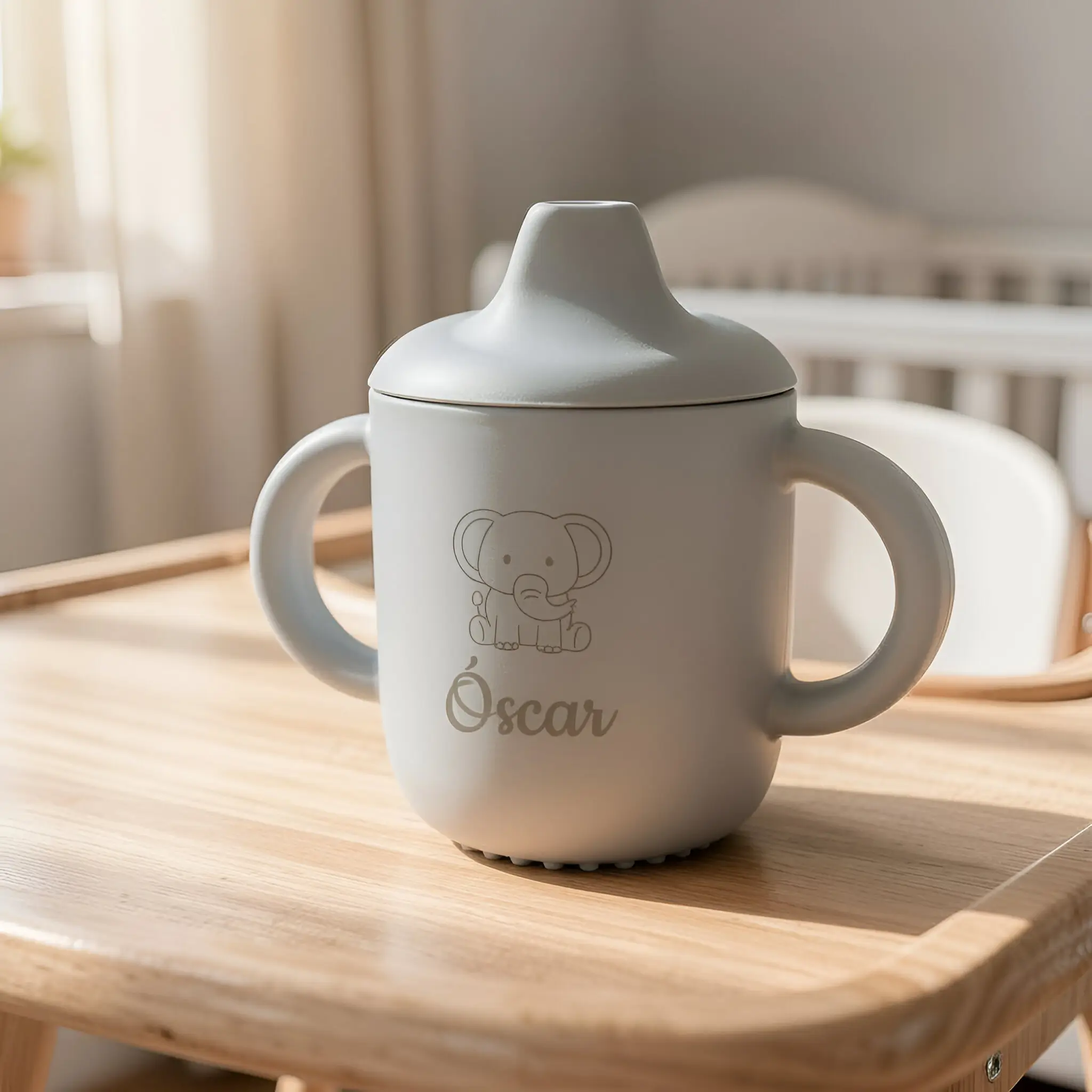 Acompaña a tu pequeño en su aprendizaje con nuestra taza de silicona personalizada, diseñada especialmente para niños que están desarrollando sus habilidades para beber de forma independiente. Fabricada con silicona suave y segura, es libre de BPA, flexible y resistente a caídas, perfecta para manos pequeñas y momentos llenos de aventura.